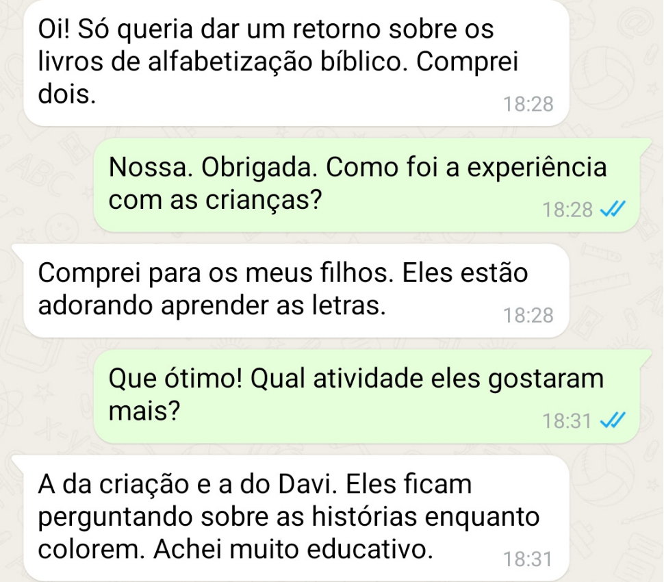 Ensinar uma criança no caminho de Deus é um dos maiores presentes que uma mãe pode oferecer. Em um mundo cheio de distrações, ver nossos filhos aprendendo desde cedo sobre fé, amor e os ensinamentos da Palavra traz paz ao coração e esperança para o futuro. Esses livros foram criados para unir aprendizado, diversão e conexão com Deus, plantando sementes de fé e guiando os pequenos por um caminho mais abençoado e cheio de propósito.